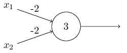 Der Beweis dafür ist folgender: Man kann Perzeptronen auch dazu verwenden, die elementaren logischen Funktionen wie AND, OR und NAND zu berechnen. NAND ist die logische Funktion, die dann und nur dann falsch wird, wenn beide Prämissen richtig sind. Angenommen, wir haben ein Perzeptron mit zwei Eingängen mit einem Gewicht von jeweils –2 und einen Bias von 3.